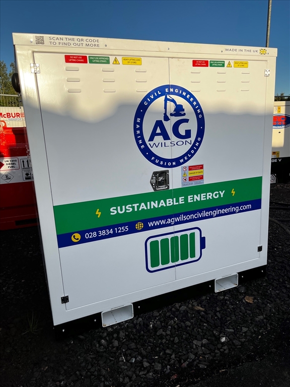 - Battery-powered hush pod for site offices and canteen, supplemented by solar panels.